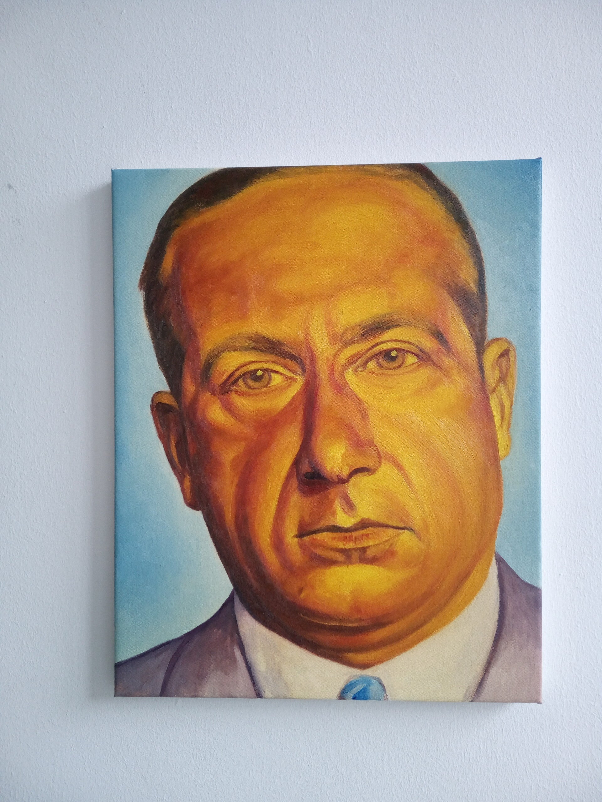 Uit de serie Mugshots: Francesco Castiglia, Frank Costello, 2024, olieverf op linnen